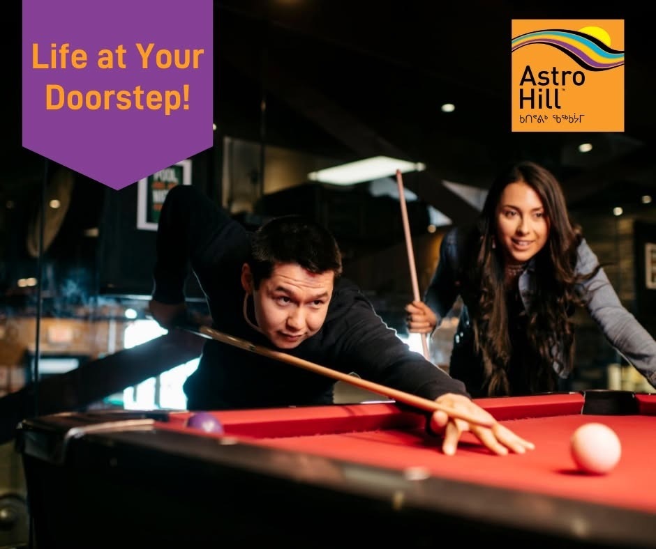 Astro Hill: Dining. Entertainment. Services. Life at Your Doorstep. Astro Hill is not just the place to live… but the place to be. Why is Astro Hill the first place people consider when choosing a prime location to stay or live in Iqaluit? Why do locals flock here on evenings, weekends and whenever they need a break from the ordinary? It's because Astro Hill is the food and entertainment hub of Iqaluit, with several convenient services available to those who live, work and play here.