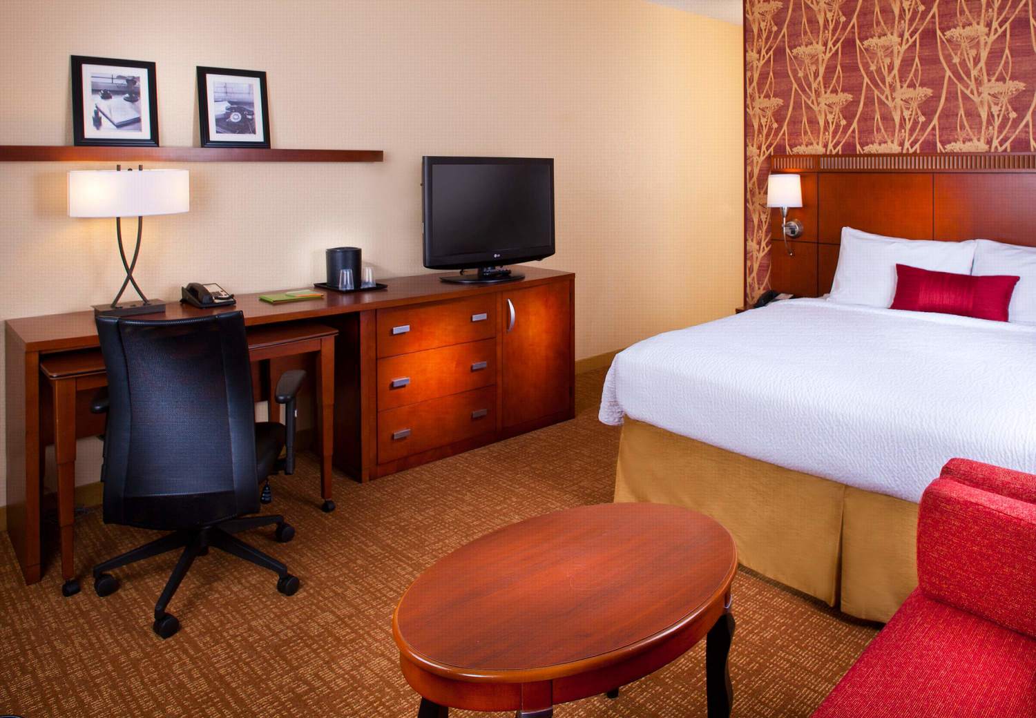 Following a day of family fun or business deals, guests can make themselves at home in a spacious hotel room or suite with complimentary Wi-Fi, a flat-panel TV, plush bedding and ergonomic workstation. Then grab a bite to eat at The Bistro, our casual eatery offering a wide selection of healthy and hearty meals plus Starbucks® beverages and nightly cocktails. Guests can enjoy our on-site fitness center and unwind at our seasonal outdoor pool for a refreshing retreat.