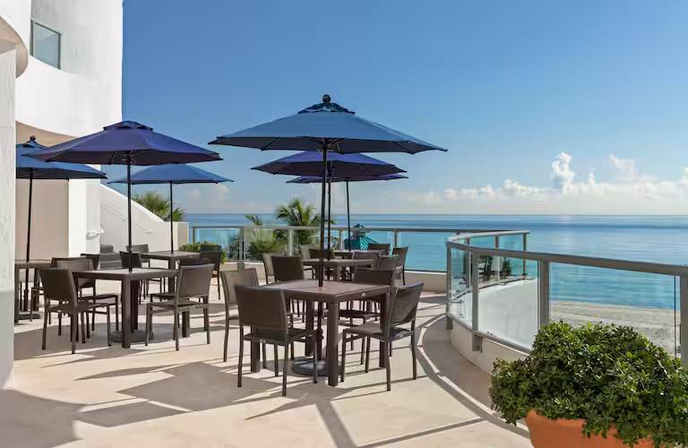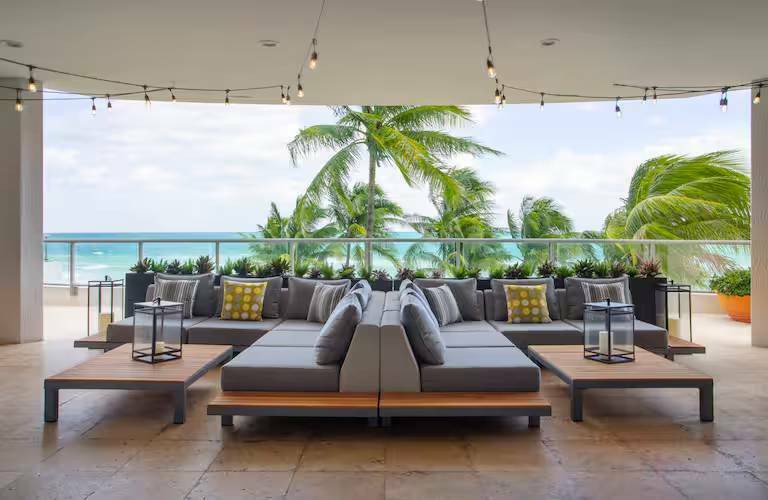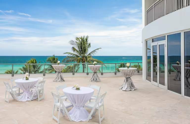 Enjoy Atlantic Ocean views from a high-rise balcony at our Miami resort. We're right on the beach, with a waterfront, palm-lined pool, complete with loungers and a poolside bar. Shopping and dining are blocks away, and the Aventura Mall and Brightline Aventura Station are within ten minutes. Every stay starts with a warm Chocolate Chip Cookie.