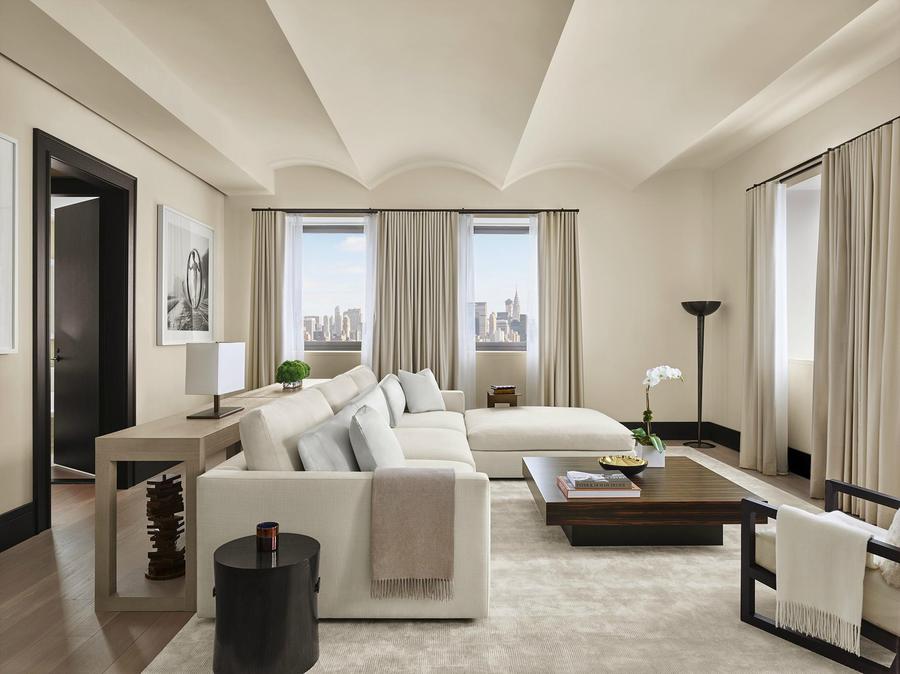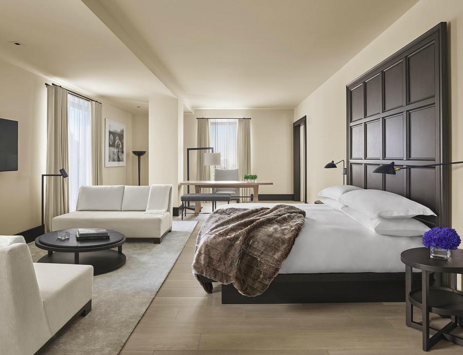 The New York EDITION’s 273 stylish guest rooms, suites and penthouses feature oak floors and dark oak wood-paneled foyers that create a cozy residential entrance combined with a modern feel. Oversized windows magically frame city views, including a close-up of Madison Square Park, the iconic Empire State Building and the breathtaking New York City skyline.