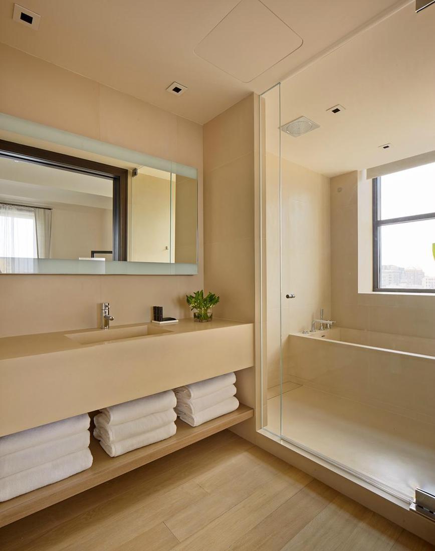 Suites feature custom sofas and chaise lounges with imported linen upholstery, silver silk drapery and a walnut coffee table with espresso leather top. Large black and white photography from renowned fashion photographer Melvin Sokolsky’s iconic 1963 “Bubble” series are perched atop dark oak ledges on the building’s guest room floors. With its wealth of individual touches, residential feel, modern sensibility and emphasis on comfort and quality, the hotel suites at The New York EDITION combine the familiar and the original to create an interior of timeless style and enduring design.