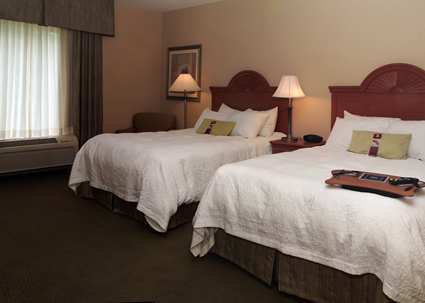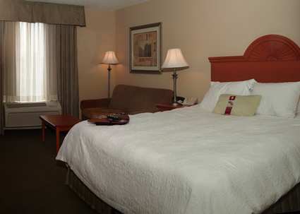 Unwind in our bright spacious Heath hotel rooms featuring home comforts like a guaranteed clean and fresh Hampton bed®, free high-speed internet access, 32 inch flat screen TV, refrigerator, coffee maker and microwave. Choose rooms with whirlpool tubs or a king sized bed to stretch out and work. Accessible rooms are available.