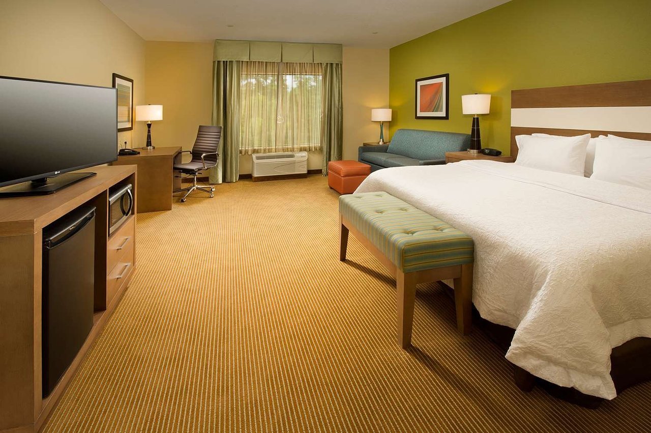 Feel at home in a comfortable guest room. Check emails with free WiFi at the spacious desk, watch free in-room movies on the LCD TV and relax on the clean and fresh Hampton bed®. Utilize our in-room microwave and refrigerator.