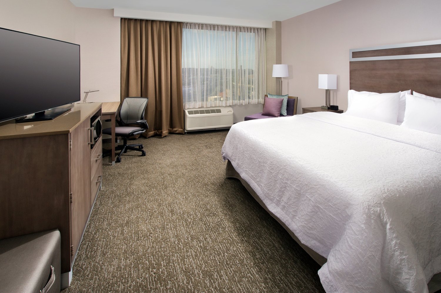 Our Washington DC/ NY Ave hotel offers comfortable guest rooms with clean and fresh Hampton beds®. Make use of a coffee maker available in every room, keep in touch with free WiFi and unwind in front of the HDTV. Start the day right with Hampton’s free hot breakfast, or opt for a free Hampton On the Run® Breakfast Bag, available Monday to Friday.
