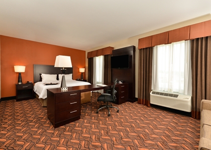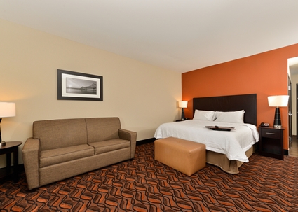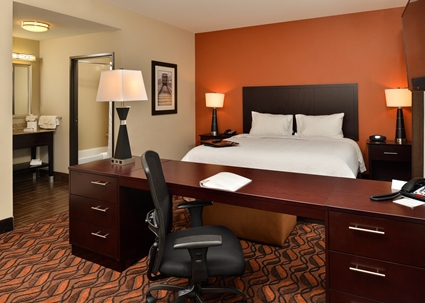 Settle into a beautifully decorated guest room, with a 40-inch LED TV, microwave and refrigerator. Upgrade to one of our suites for additional room. Check emails with free WiFi at the spacious desk and get a great night's sleep in the clean and fresh Hampton bed®. Each morning, wake up to Hampton's free hot breakfast or grab a Hampton's On the Run™ Breakfast Bag, available every weekday. Stock up on a variety of snacks, drinks and essentials in the 24-hour Suite Shop® and enjoy 24-hour access to free tea and coffee in the lobby.