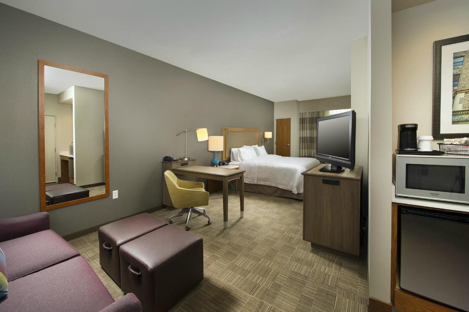 Settle into a spacious guest room or suite with free WiFi, TV, microwave and mini-refrigerator. Work at the ergonomic desk, then get a great night's sleep on the clean and fresh Hampton bed®. Wake up to Hampton’s free hot breakfast, featuring delicious hot and cold favorites, including fresh waffles and hearty oatmeal with toppings.