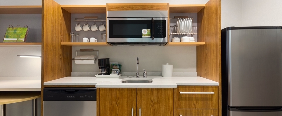 Make yourself at home in a spacious suite featuring a well-equipped kitchen complete with a full-size refrigerator, dishes, microwave and flatware. Our flexible suites and moveable furniture allow you to customize the space to suit your needs. Choose from a studio suite or one-bedroom suite with king- or queen-sized beds, and take advantage of the sofa sleeper in the separate living area.