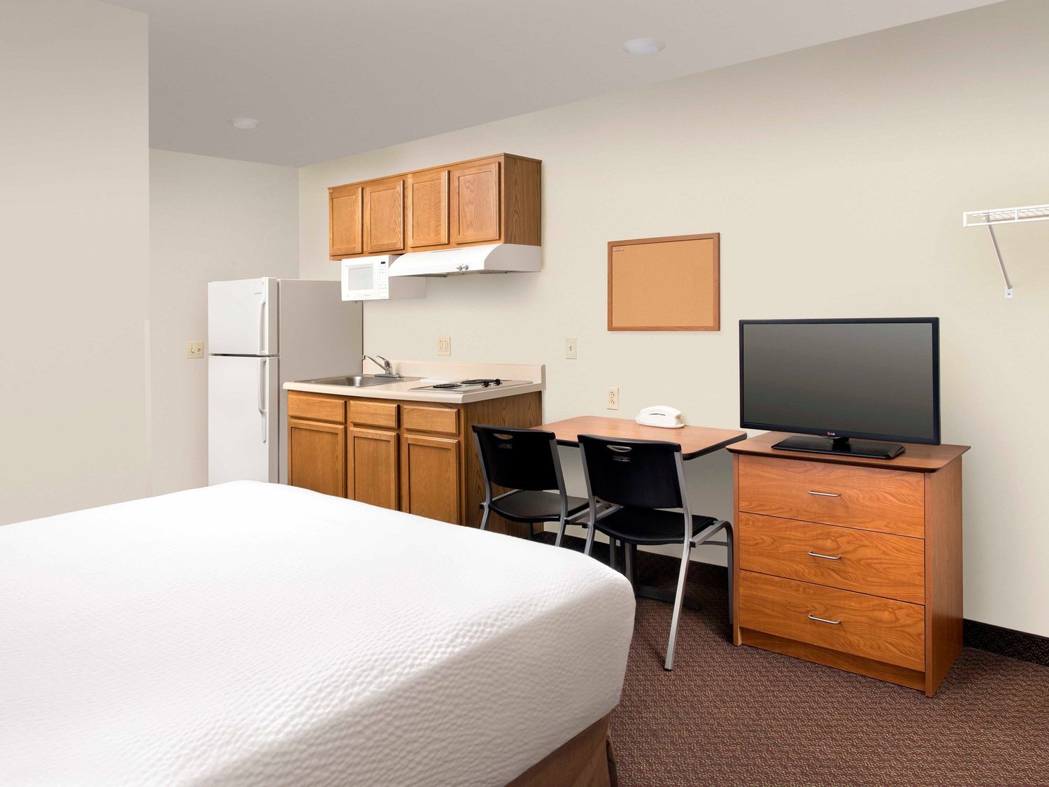 As an extended stay hotel, WoodSpring Suites Signature South Central combines the comforts of home and the ease of a hotel for those traveling for a week or more. Options like three room choices, all with queen-sized beds, and some with sofas, in every suite give guests plenty of space to rest and relax. In-room kitchens are complete with prep sink, two-burner stovetop, full-sized refrigerator and freezer, microwave oven, counter and cupboard space. Additional kitchen items are sold during check-in or office hours, upon request. Fitness center is available at all times. Smoke-free hotel rooms and non-smoking hotel rooms available. Pet-friendly hotel policies (see overview below). Free basic wi-fi / free wireless internet and free parking for all guests for the duration of your stay. There is 24/7 guest support available as is a guest laundry room and vending machines.