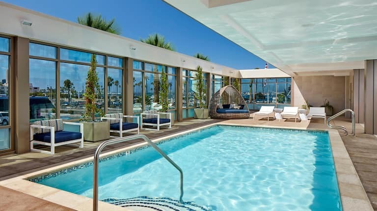 Right on the edge of Little Italy, we're two blocks from San Diego International Airport (SAN) and less than two miles from downtown. A 10-minute drive gets you to the convention center and the Gaslamp Quarter. During your stay, enjoy daily hot breakfast, free WiFi, complimentary evening socials (Monday – Thursday), and an in-suite kitchen.