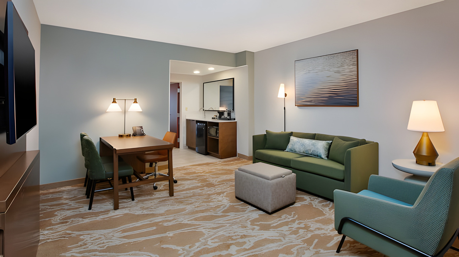 Set just a short drive from the bustling center of downtown San Marcos, the Embassy Suites by Hilton San Marcos Hotel Conference Center & Spa is a contemporary and spacious hotel that offers more space and flexibility during your stay. Each of the San Marcos hotel’s 283 two-room suites provides a superb range of modern hotel amenities, including two flat-screen TVs and wired and wireless internet access. Whether you want to dine on a free made-to-order breakfast or prepare one yourself using the suite’s mini refrigerator, microwave and coffeemaker, our hotel in San Marcos, TX is designed to give you more freedom.