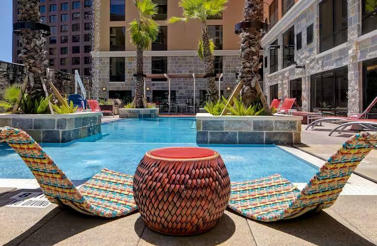 Our hotel is in San Antonio's historic district, right on the River Walk. The Alamo, the 18th century San Fernando Cathedral, Historic Market Square, and La Villita Historic Arts Village are within walking distance. River boat rides can also be picked up just a short walk from the hotel. We have a pool and fitness center, and the WiFi’s on us.