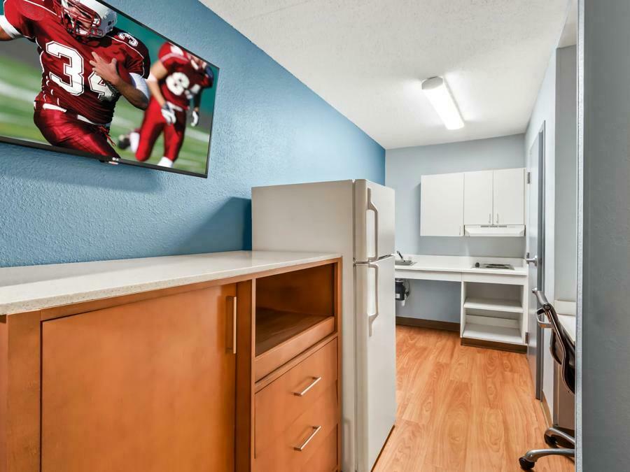 At HomeTowne Studios by Red Roof in Livonia near Detroit, Michigan, you'll get an affordable extended stay experience with flexible options. Our spacious hotel rooms are created for comfort, featuring modern kitchenettes with a full-sized fridge, microwave, stove top, sink, and dining table with chairs. If you need more cooking gear, kitchen kits are available at the front desk for a small fee. Relax in comfort on a Serta bed, and enjoy cable on an HD flat-screen TV. We make sure you have all the basics of home for a comfortable and easy stay, perfect for long-term guests. This includes free high-speed Wi-Fi, weekly cleaning, and free utilities and parking.