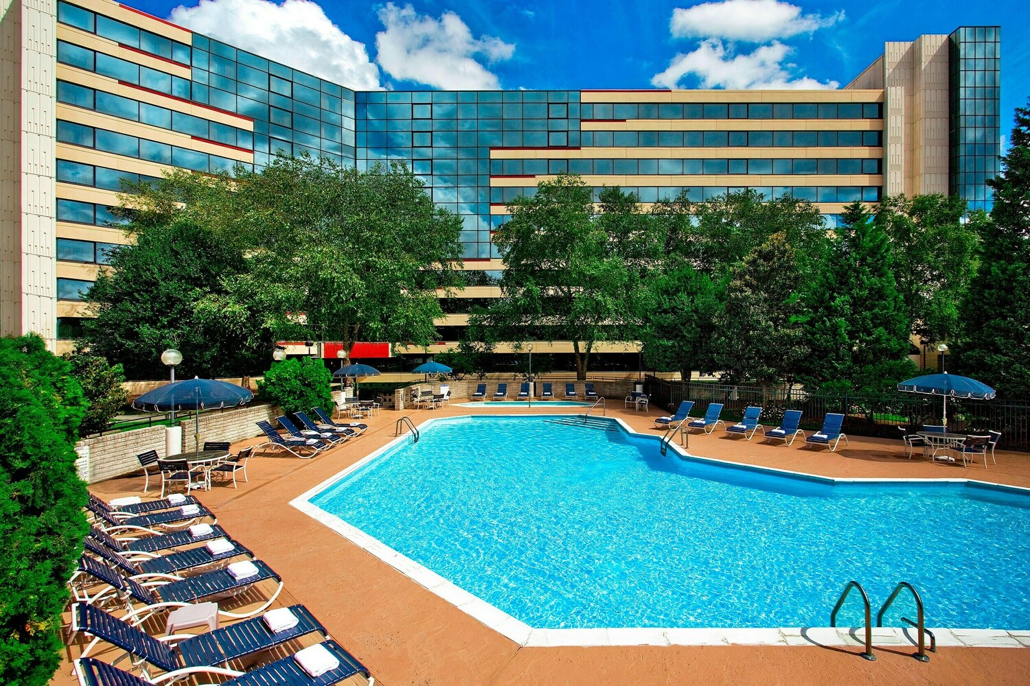 Sheraton Imperial Hotel Raleigh-Durham Airport at Research Triangle Park welcomes you with an ideal location near RDU and amenities for a perfect stay in the North Carolina Triangle. Our fully renovated hotel is 4 miles from the Raleigh airport and offers complimentary airport transportation. Our current parking fee is $10.00/day. While on-property, enjoy breakfast and dinner at our Season’s Restaurant, or all-day dining and drinks at &More by Sheraton. Keep fit at the Fitness Connection and refresh in our seasonal outdoor pool. We are an easy commute to RTP businesses and near entertainment such as Boxyard RTP and TopGolf Durham. Bring your furry friends! We are a pet friendly Durham hotel. Planning an event? We welcome corporate meetings, social groups, and weddings in our 32,000 square ft Durham event venue. Hourly coworking space is available in our innovative studios. Finally, end your day in our deluxe guestrooms with wi-fi, desk, luxurious bedding, and Sheraton Signature Sleep Experience beds.