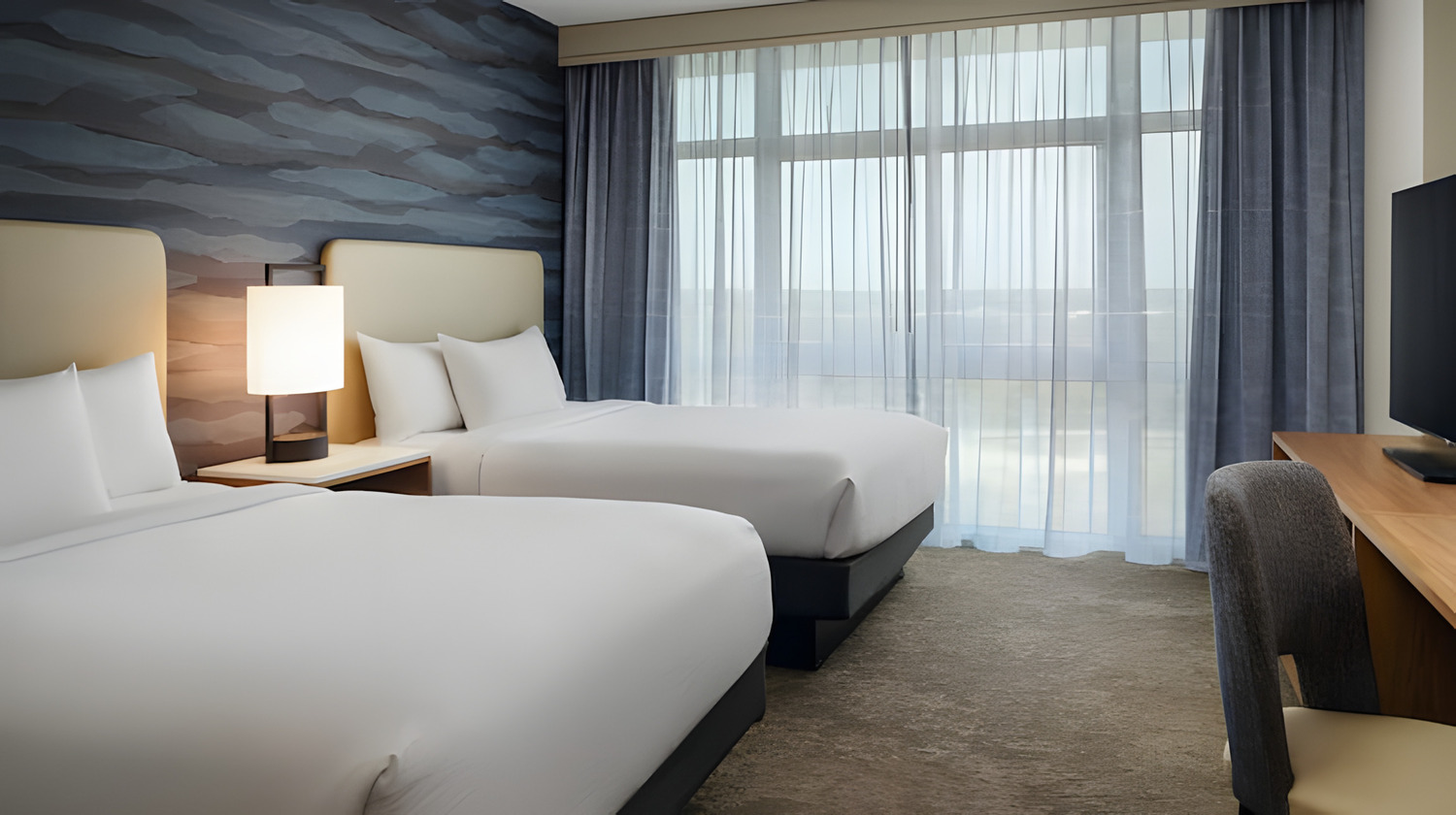 Two-room suites offer more space for living and working. Each suite features a separate living room and bedroom, two flat-screen TVs, a work desk, refrigerator and microwave. Choose a Corner Suite for floor-to-ceiling windows and even more living space.