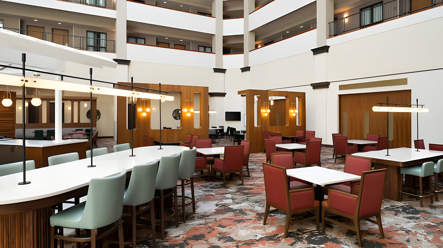 Get your day off to a great start with a free made-to-order breakfast each morning, and wind down in the evenings at the complimentary Evening Reception with drinks and snacks. Enjoy a delicious steak or seafood dinner in the relaxed surroundings of The Palmtree Grille. Get to work at the 24-hour BusinessLink™ Business Center with complimentary printing. Take a swim in the indoor pool or enjoy an invigorating workout in the complimentary fitness center.