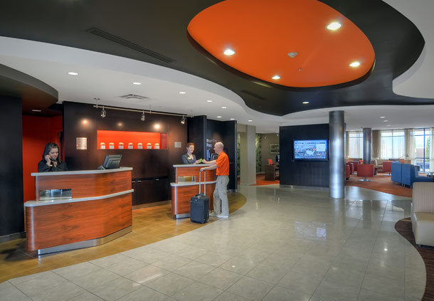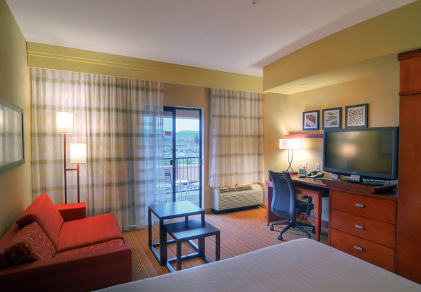 The new state-of-the-art lobby at Courtyard Medford Airport provides greater flexibility and choices for our guests. This hotel, in the heart of the Rogue Valley, features our new lobby with inviting, flexible spaces to work or relax in, free Wi-Fi throughout and easy access to the latest news, weather, and airport conditions via our GoBoard. The highlight of our new lobby experience is The Bistro- Eat. Drink. Connect. which provides guests with healthy food and beverage offerings in the morning and evening dinner service with cocktails. This hotel near downtown Medford is also conveniently located a quarter of a mile from the Rogue Valley International-Medford Airport. We offer complimentary shuttle service to the airport, a well equipped fitness center, indoor pool and whirlpool. A 24hr business center and boarding pass printing service is also available. Your stay at the Courtyard Medford Airport is sure to be more comfortable, more productive and more enjoyable than ever before!