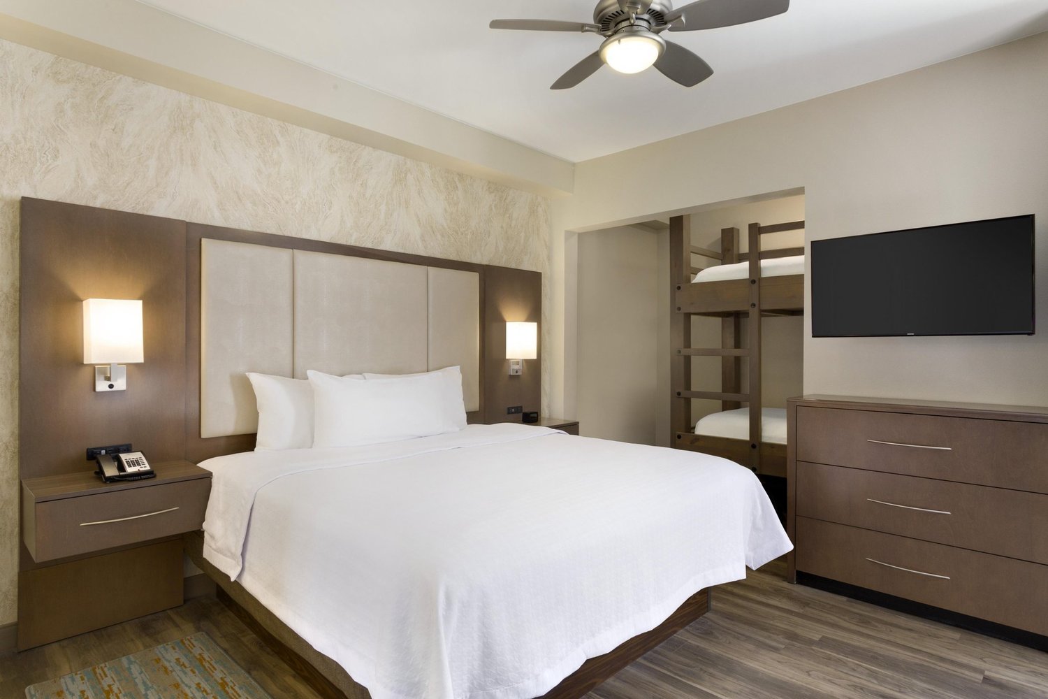 Each inviting suite at our extended-stay hotel has a living area, work desk, dining space and full kitchen. Relax on the sofa watching the 42-inch HDTV, and enjoy complimentary internet access and PrinterOn® remote printing. Traveling with family? Our larger suites offer private bedrooms, and we have cribs and high chairs to make your stay more comfortable. Accessible suites are also available.
