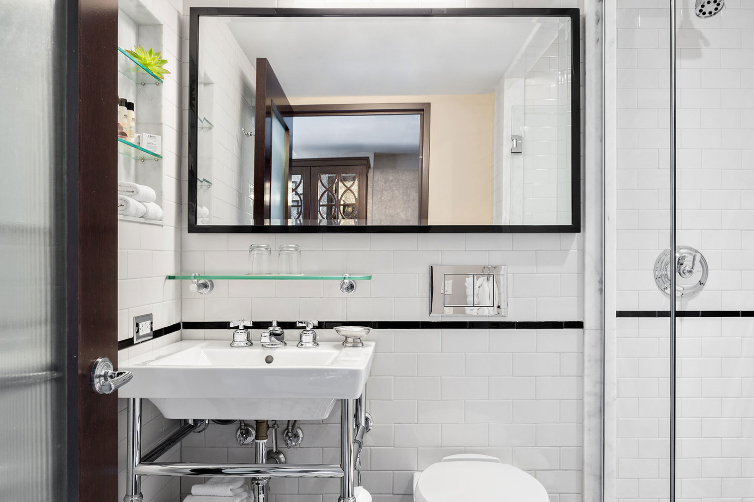 A carefully curated library featuring classic New York-themed books, include early editions by authors from those who call, or have called, Greenwich Village home. Plush seating and private nooks invite guests to settle in and appreciate the attention to detail and thoughtfulness that went into creating this boutique hotel in NYC.