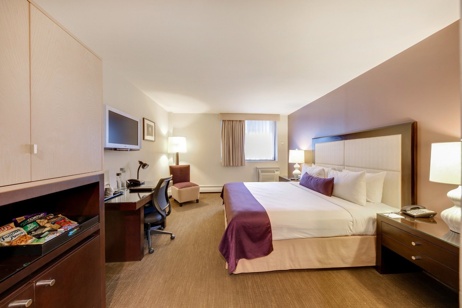 Guests love the modern comfort of our boutique guestrooms and suites, each beautifully appointed with oak furniture, plush pillow-top beds, marble countertops and the finest upscale amenities. All accommodations include complimentary Wi-Fi, a mini-bar, coffeemaker, plush bathrobes, flat-screen TV and special extras like room service and morning newspaper delivery.
