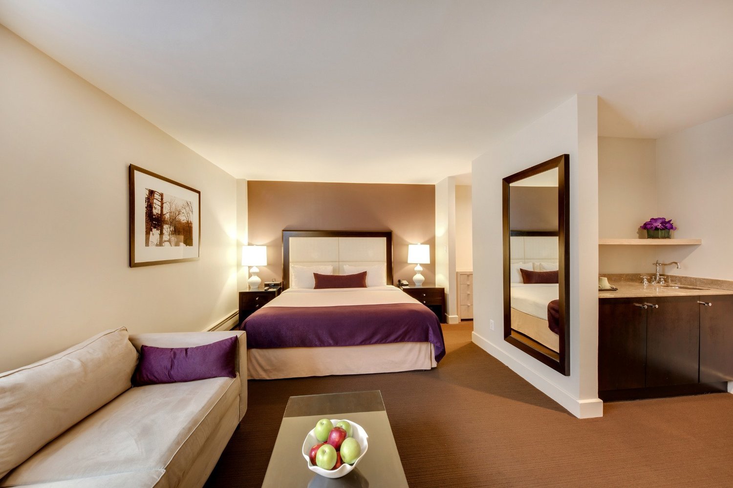 The Andrew's stylish property and thoughtful services create the perfect setting for leisurely getaways and productive business trips. Enjoy valet parking, complimentary breakfasts and access to New York Sports Club. We also have a delightful Mediterranean restaurant that serves authentic cuisine for lunch and dinner.
