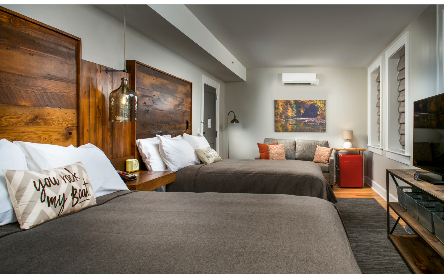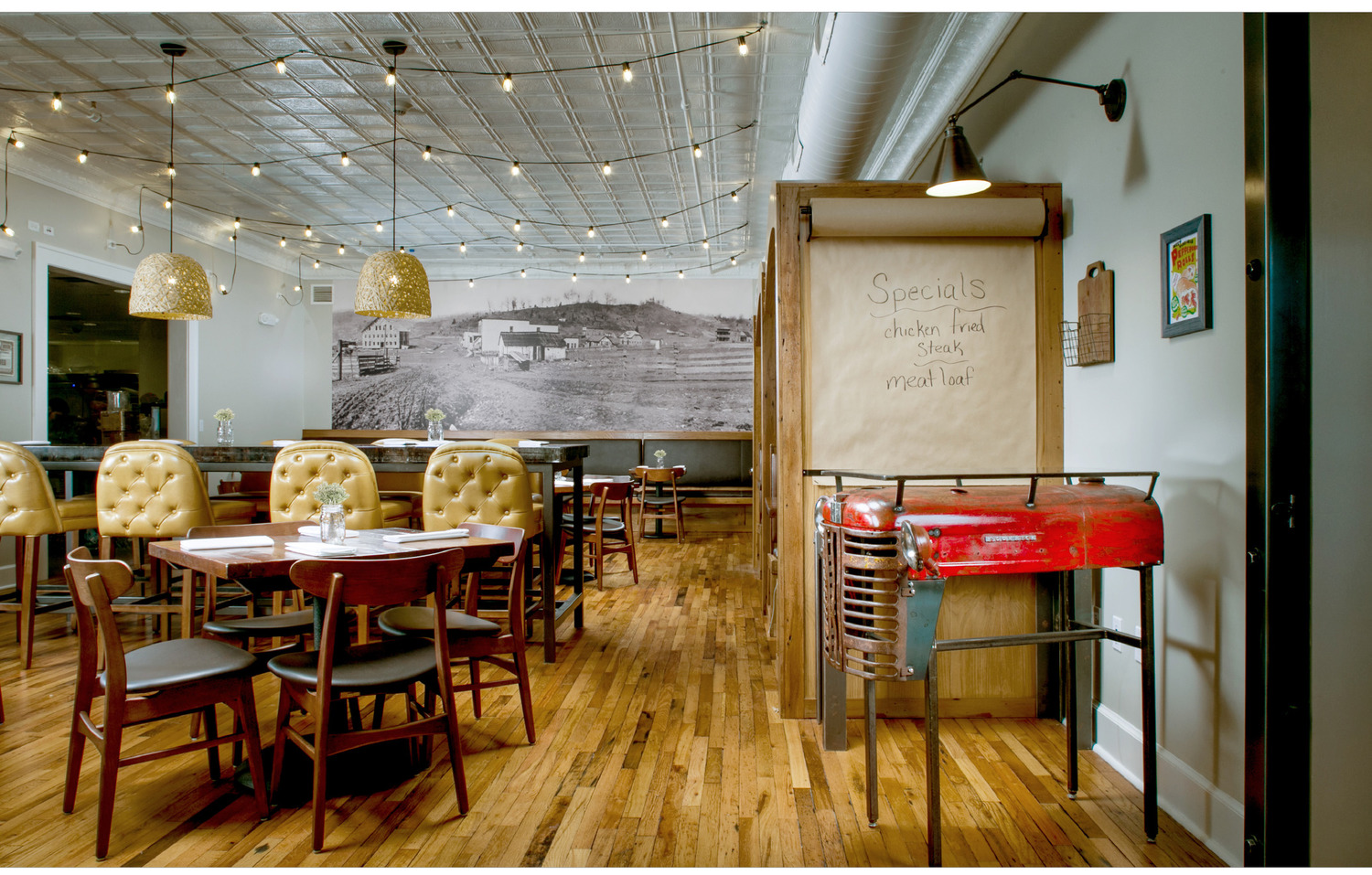 The Western Front Hotel is a 30-room property featuring a restaurant, gift shop, two outdoor terraces, the Roost – an entertainment space for guests, and the BackYard for communing around the firepits and listening to great music. All of these venues are housed within a 1922 historic building most recently known as the Willis Building. Formerly a retail and apartment building, the property has been brought back to life thanks to the local St. Paul community and developers Creative Boutique Hotels (CBH). Known for developing boutique hotels from historic buildings, CBH has remained true to the authenticity both the building and the community in which it resides utilizing as much of the original tin ceilings, wood pulled from the building and wood floors. “From a design standpoint, we tried to put back what came out in some new way,” said Kimberly Christner, President and CEO of Cornerstone Hospitality and partner in Creative Boutique Hotels. “The headboards are made from the historic apartment doors, the night stands, dining tables and bar in the restaurant are made from the wood from the building.” The property also features local artists work throughout the building, pay homage to local lure of the Western Front with original jail cell doors from the St. Paul Jail, historic photography, named spaces based on local history and much more. “Since guests from all over will be staying at the Western Front, we knew we had to strike a delicate balance,” said Patti Tritschler, president of IIG, the design firm for the project. “Our goal was to preserve the authenticity and history of the building while also creating something new that would add value to the community.”