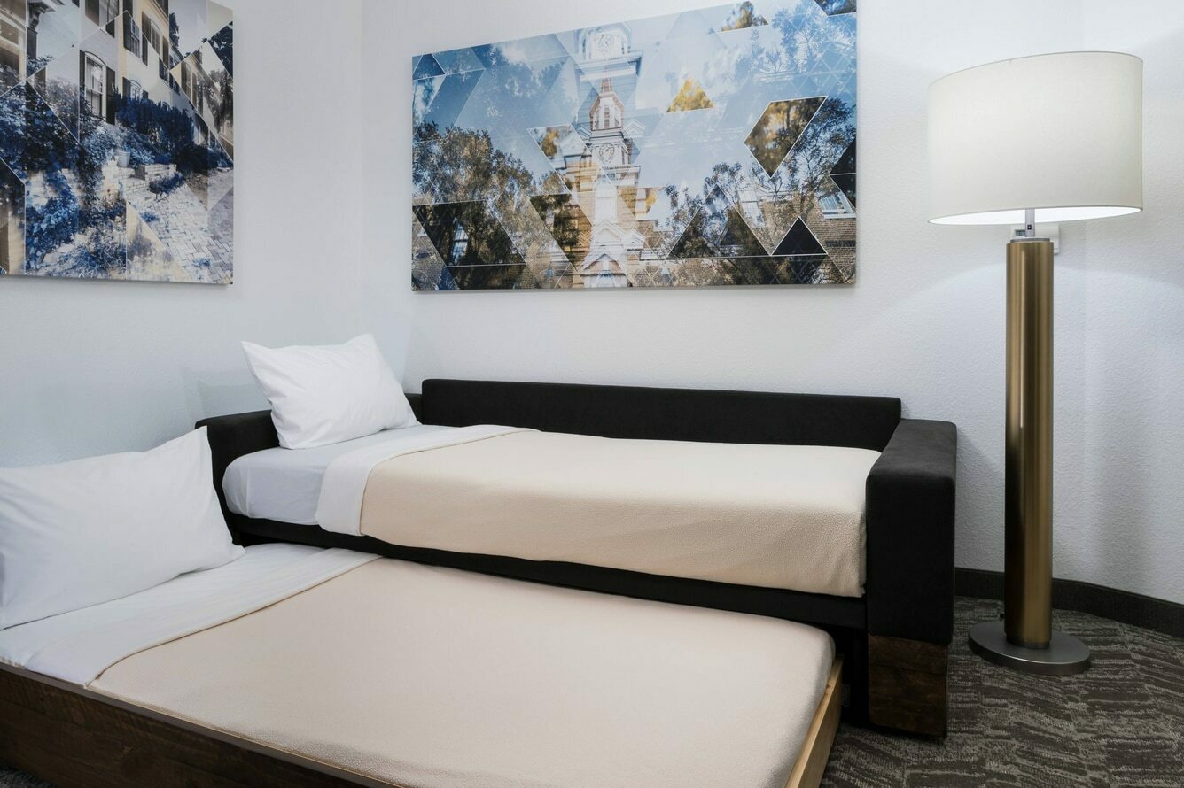 Experience timeless charm just minutes from Washington D.C. at our pet-friendly SpringHill Suites Alexandria Old Town Southwest. Located near I-495 outside Old Town Alexandria, VA, our hotel places you near iconic destinations like National Harbor, King Street Station, Mount Vernon, downtown Alexandria, and Cameron Run Regional Park. Settle into your extended stay accommodations featuring plush bedding, flat-panel TVs with premium streaming, in-room workstations, and high-speed Wi-Fi. Start your day with a delicious breakfast buffet serving your favorite morning classics. Stick to your routine in our 24-hour fitness center with cardio machines and gym equipment. Host meetings in our Alexandria Old Town space, accommodating up to 40 attendees with custom catering, AV equipment, and expert event support. Enjoy comfort, convenience, and a warm welcome for you and your furry friends at SpringHill Suites Alexandria Old Town Southwest.
