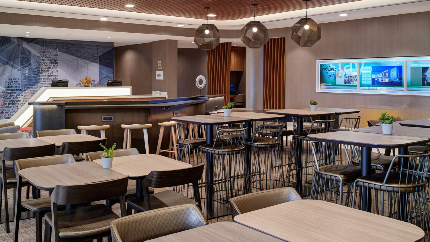 Experience the modern style of SpringHill Suites in Wixom, which is just minutes away from Suburban Collection Showcase, Ascension Providence Hospital & Total Sports Complex. Unplug, relax & unwind in front of our fire pit or charge up with one of our many charging stations, while surfing on the free Wi-fi. Sink into one of our king or double queen suites, featuring a comfortable trundle couch featuring a smart T.V. that rotates for easy viewing from any area in the room. Our luxurious bedding will help make you feel relaxed and at ease. Join us at our hotel in Wixom, MI, in the morning for a free hot breakfast and coffee to start your day off right.