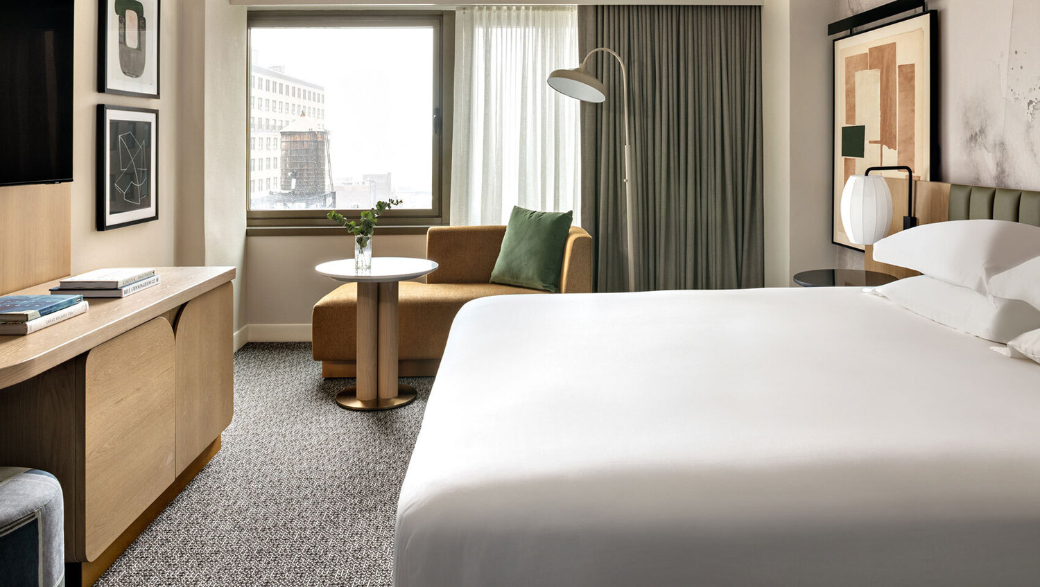 Steps from iconic attractions like Times Square, Broadway theaters, and Central Park, Kimpton Theta offers travelers a perfectly placed home base for exploring the best of New York City. Designed with today’s modern guest in exploring the best of New York City. Designed with today’s modern guest in mind, our Midtown Manhattan hotel blends minimalist luxury with practical mind, our Midtown Manhattan hotel blends minimalist luxury with practical comfort - ideal for business trips, romantic escapes, and everything in between. From thoughtful amenities, pet-friendly rooms to our signature evening social hour, Kimpton Theta New York redefines what it means to stay in style in the heart of NYC.