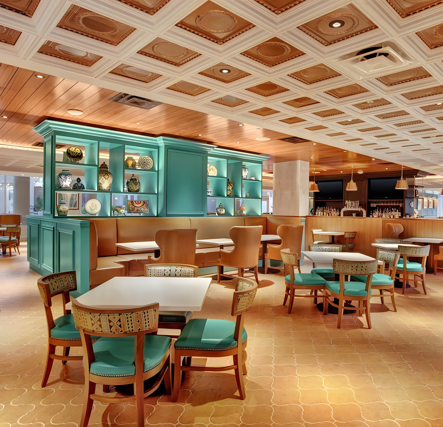 • The Dome Bar - Sip on a curated cocktail or enjoy a glass of wine with one of our light bite offerings under our iconic 25-foot Tiffany -style, stained-glass dome.