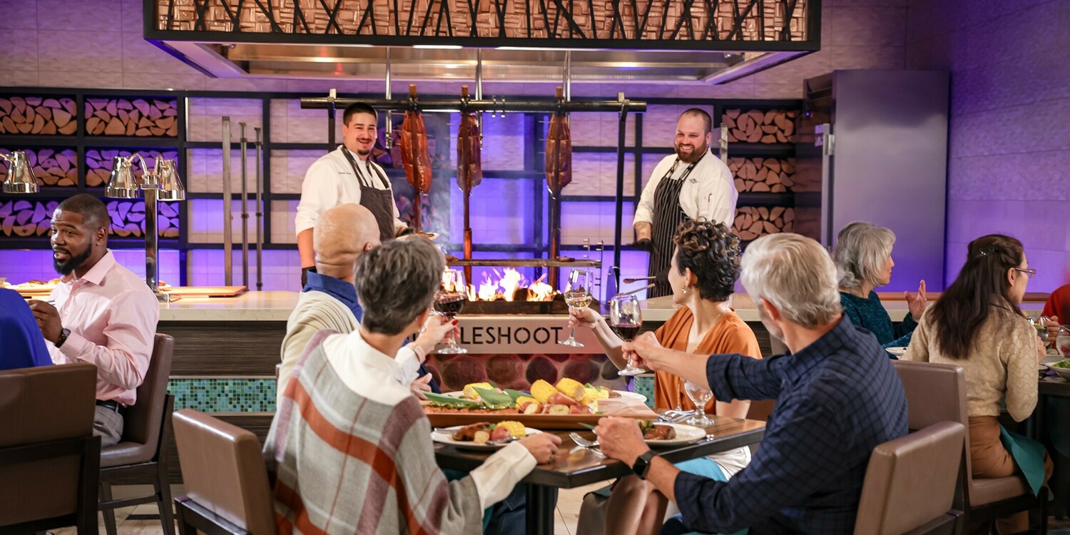 Our comprehensive range of dining outlets feature steaks, seafood, sandwiches, salads, Asian, and comfort foods. Our venues include Restaurant 8 - Asian cuisine, Smoke & Cedar - rooftop steakhouse, Market 253 - farm-to-table fresh, Sweet Shoppe, our Sportsbook, the Center Bar and Lounge located next to the Muckleshoot Events Center, as well aa variety of quick service food outlets.