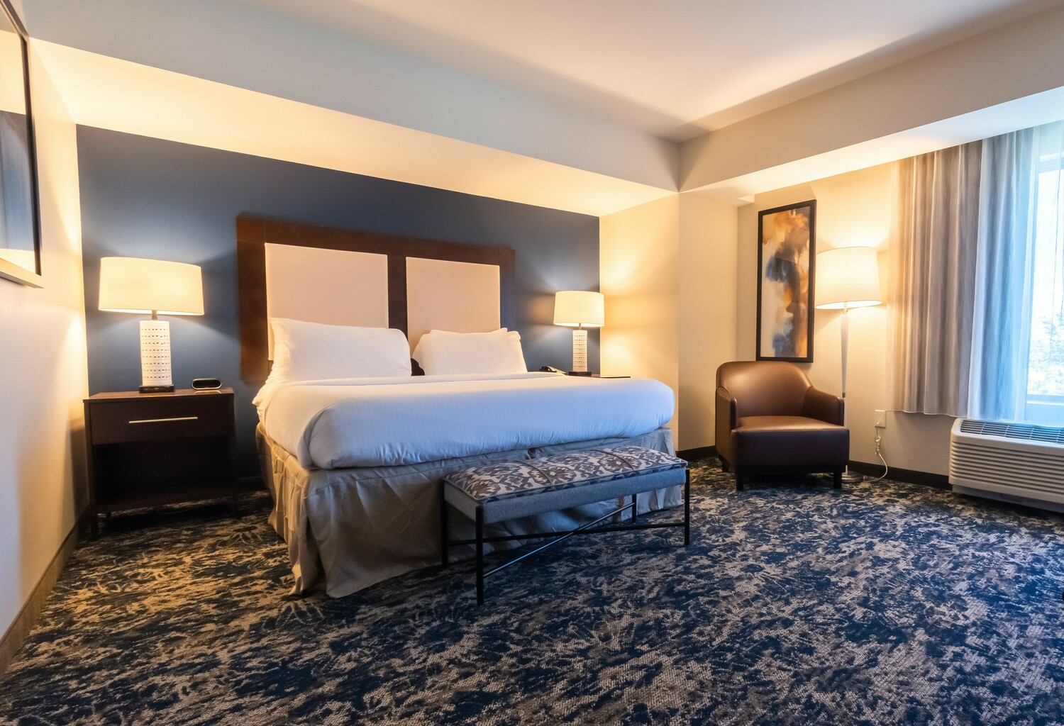 Guests of our 250 room hotel can take a dip in the outdoor pool, work out in the fitness center,  enjoy a delicious meal in one of our seven restaurants, or relax with a beverage in one of our four cocktail lounges.