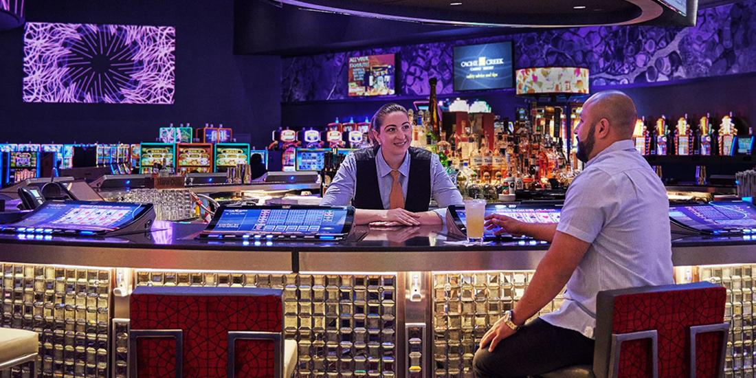 Our Casino features a 74,720 sq. ft. floor with 2,300 slot machines - 200 in a non-smoking area, 120 table games which include Blackjack, Craps, Roulette, Pai Gow Poker, Baccarat, Mini-Baccarat, and Ultimate Hold'em, as well as a High Stakes Table Area, with a full-service bar and VIP Casino Cage.
