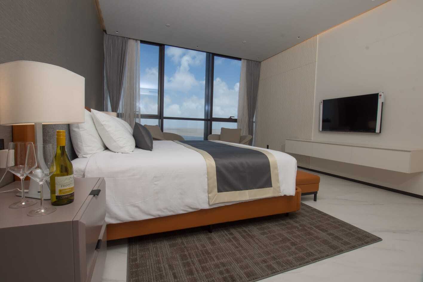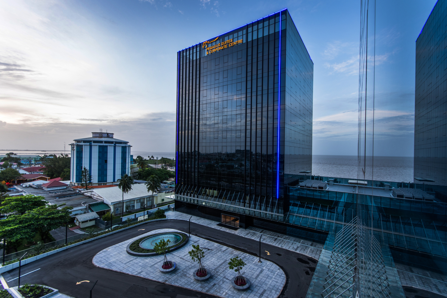 Experience a luxurious and relaxing stay at Atlantic Suites Hotel (Formerly Pegasus Suites and Corporate Center). Having hosted a rich and diverse list of international dignitaries, from Queen Elizabeth and the Royal family to former American President Jimmy Carter, President Clinton, Caribbean Prime Ministers, South American Presidents, Prime Minister Tony Blair, Mike Jagger, and Bollywood star Amitabh Bachchan, we are the hotel of choice for discerning business and leisure travelers. Located in Georgetown, Guyana, at the convergence of the Demerara River and Atlantic Ocean, Atlantic Suites Hotel offers stunning seascape views, highlighted by the sightlines in our Aura Sky Lounge, which features a 360-degree view of Georgetown and the ocean.