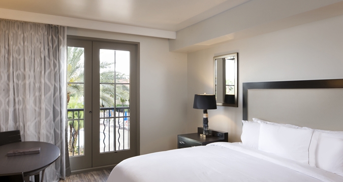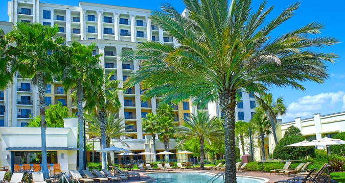 Staying at Las Palmeras, a Hilton Grand Vacations Club means settling for nothing but the best when it comes to planning the perfect family-friendly Orlando vacation. This high-rise timeshare is located just minutes from Walt Disney World®, Universal Orlando™ and the Orange County Convention Center. Choose from a studio with a kitchenette or go all out in a 2-bedroom suite with a full kitchen, living and dining area, and balcony. Either way, you’ll also have access to this Orlando resort’s amenities, including a pool with a waterslide and splash pad.