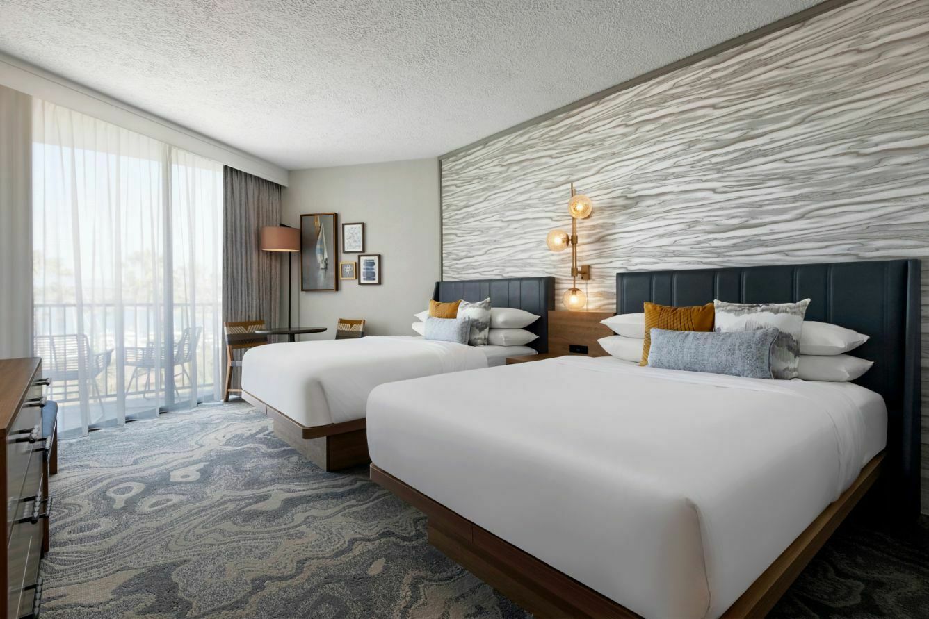 Sheraton San Diego Hotel & Marina dazzles guests with spectacular views of the marina or downtown skyline. Experience San Diego with a central location in the heart of the harbor, yet just minutes from San Diego Airport with a free shuttle. Enjoy being near downtown, Gaslamp Quarter, San Diego Zoo, and Petco Park, for a fun time in the city. Our newly renovated marina tower shines with coastal hues and modern amenities and our light-filled accommodations have a private balcony with seating. Enjoy picturesque views of the bay or marina in the classic bay tower guest rooms that also boast private balconies with seating. Stop by Quinn’s Alehouse for a refreshing brew or enjoy dining al fresco at Shoreline Cantina. Enjoy our sprawling outdoor pool complex, with ample opportunities to soak in the San Diego sun or large fitness center. Featuring over 130,000 sq ft of venue space accentuated by waterfront views, our San Diego Harbor Hotel is an inspired choice for weddings and meetings