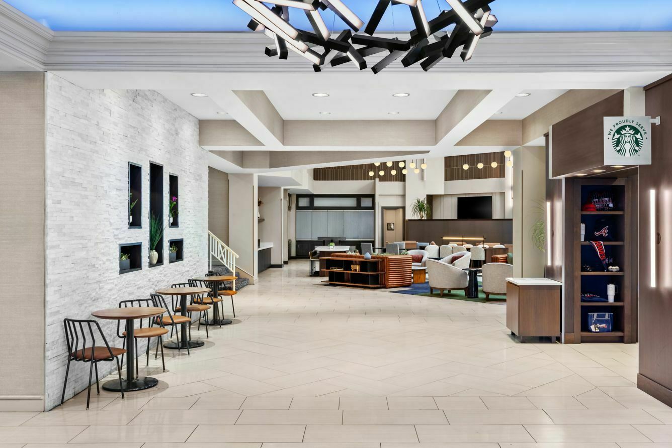 Unwind in stylish newly renovated suites! Walkable to Truist Ballpark, home of the Atlanta Braves. Our newly renovated upscale extended-stay hotel, which includes a daily hot breakfast buffet, is steps away from dining and shopping attractions including the Cumberland Mall, Cobb Galleria Centre, Truist Ballpark and The Battery Atlanta. Enjoy easy access with the Skyway Walking Bridge connecting the hotel to Cobb Galleria Centre and The Battery Atlanta. Retreat to our newly renovated stylish and spacious suites that include a separate living room area with a privacy door, work desk, wet bar with a mini fridge and microwave, luxury bedding and high-speed Wi-Fi. Enjoy onsite dining at Hank's Kitchen + Bar serving American cuisine, and specialty cocktails, and enjoy our complimentary breakfast buffet daily. Head to our fitness center to stay on top of your exercise routine. Indoor/Outdoor pool has been newly renovated.