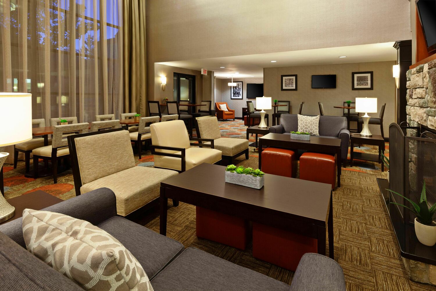 Retreat to superior accommodations that include complimentary amenities such as a daily hot breakfast buffet, evening Social reception with beer and wine on tap, Mondays through Wednesdays 5:30pm to 7:00pm. Open 24/7 is our fitness center, business center with fax and copy services and laundry facilities; all complimentary to guests. Our spacious suites have fully equipped kitchens with refrigerator, microwave, stovetop, and dishwasher. Every suite has a 32' flat screen high definition TV.